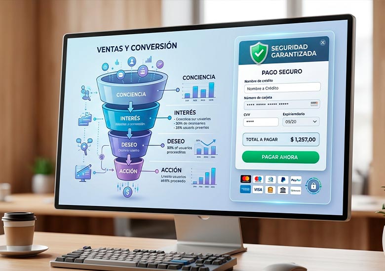 Captura inteligente de prospectos y cierre transaccional con pasarelas de pago integradas.